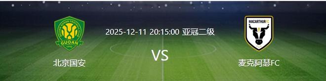 北京时间12月11日晚20:15,亚冠二级联赛E小组赛第6轮将上演一场中国球迷无比关注的比赛,刚刚斩获足协杯冠军的北京国安坐镇主场迎战澳大利亚球队麦克阿瑟FC。
